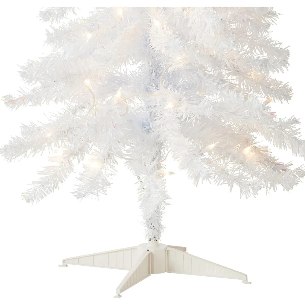 This Tinsel Pre-Lit Artificial White Christmas Tree stands at 4 feet tall and has a 24-inch base diameter. It boasts a full, natural look with hundreds of meticulously crafted branch tips that form lush, lifelike branches. The tree is adorned with 70 white lights that stay illuminated even if one bulb burns out, and these lights are pre-strung, simplifying the setup process. The tree’s pre-attached, hinged branches make for an easy setup and can be folded back for compact storage. It’s recommended to allocate 45 to 60 minutes to shape the tree by peeling back the branches and gently pulling apart the tips. The tree is powered by plugging it in. Made with durable, high-quality materials, it features hypoallergenic, fire-resistant needles, ensuring a safe and festive atmosphere for years. It also includes a sturdy metal base. We believe that memorable holiday moments should be abundant and not rare. This Christmas, let our decorations enhance your home while you create more of those enchanting memories.